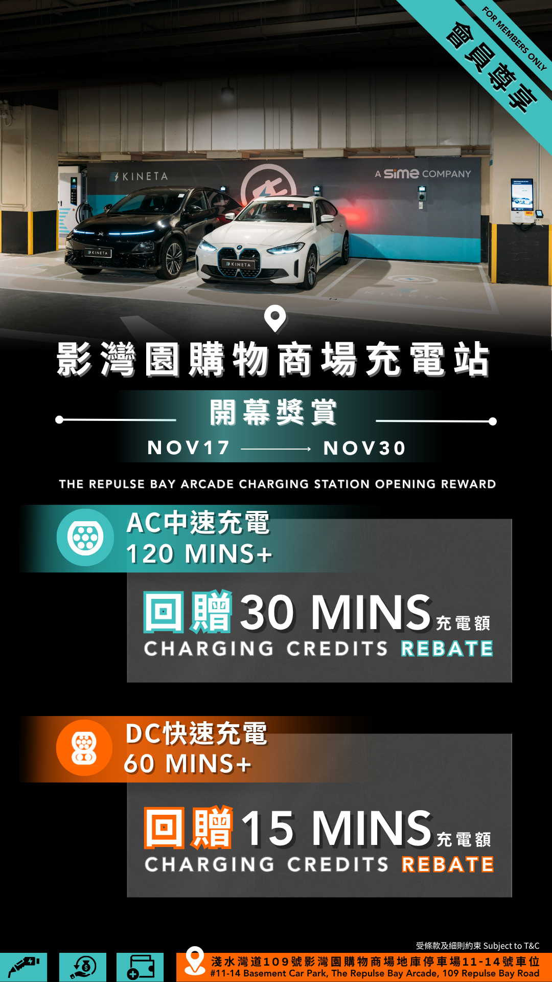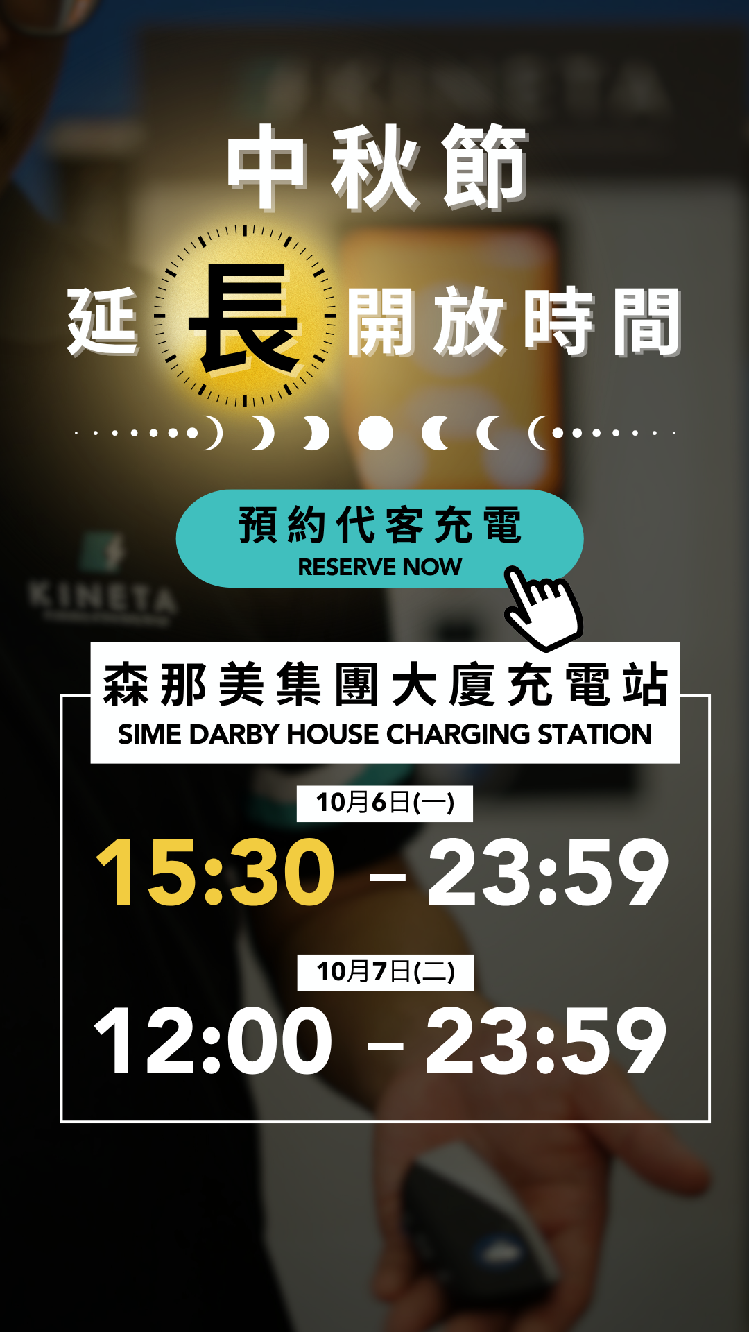 (代客充電服務營業時間:星期一至五: 20:00-24:00、週末及公眾假期: 12:00-24:00)